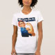 As características deste design do tshirt do vintage do divertimento anos quarenta denominam a mulher em macacões azuis do trabalho e em buscar o lenço vermelho e branco do polkadot. É hetero olhar fixamente para fora em você porque dobra seus músculos poderosos. A menina na ilustração é Rosie o rebitador pelo artista Howard Miller que disparou nela à fama em uma campanha de publicidade WW2 americana que incita mulheres ajudar o esforço da guerra saindo trabalhar nas fábricas e fazendo os trabalhos dos homens. Sim, "nós podemos fazê-lo!" Rosie disse-lhe irmãs para trás no dia. Hoje nosso T retro podia dar-lhe a motivação para fazer sua própria coisa. Deixe-nos ouvi-lo para Rosie. Vestir-la com orgulho!