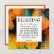 Um cartão de encorajamento na moda-cristão, com uma citação inspiradora baseada na bênção bíblica dos Números 6:24-26, que inicia o SENHOR BEM-VOS E GUARDA-VOS. A design mostra um padrão de anzol amarelo e laranja inspirado nos citros ao fundo. O verso de script é PERSONALIZÁVEL para que você possa alterar a versão de Bíblia se desejar (algumas pessoas preferem NIV, NKJV, KJV, etc). Há também uma mensagem personalizável no verso, que você pode personalizar com seu próprio texto e nome.
