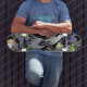 Os papagaios e as flores dos Cockatiels neste skate projetam para amantes do pássaro pelo estúdio de ronrom de dois gatos.