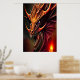 Um dragão de laranja vermelho com aparência assustadora está sorrindo para mostrar seus dentes afiados em sua boca. Esta é uma arte gerada por IA.