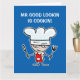 O Sr. bonito está cozinhando o cartão de aniversário desproporcionado muito grande para o cozinheiro chefe.