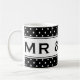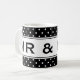 O Sr. e a Sra. engraçados caneca para recentemente weds. Ideal para casamentos, recepções de casamento, ensaios e solteiro ou festa de solteira. Design preto e branco elegante do teste padrão de bolinhas. Texto elegante de Personalizable e cor do fundo. Faça-lhe um senhor e um presente do favor das faltas! Mude a cor do fundo atrás dos pontos para combinar todo o tema do casamento. Toda a cor é rosa possível do IE, vermelho, turquesa, cinza, azul, verde, etc. alaranjados personalizam-no com seu próprio texto e escolhem-nos qualquer pia batismal de elegante a moderno. Design branco do teste padrão pontilhado da polca para o casal de recem casados.