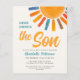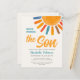 Convide a família e os amigos para o seu chá de fraldas temático com este belo convite para o chá de fraldas dos rapazes. Apresenta o texto "Aqui Vem o Filho" na tipografia da na moda com um sol de cor aquosa brilhante sobre fundo creme macio. Facilmente personalizável. Original Watercolor © Michele Davies.