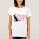O t-shirt básico da mulher com logotipo surpreendente das caudas na parte dianteira e na bandeira & o ícone na parte traseira.