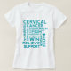 O slogan da consciência do cancro do colo do útero diz a pesquisa, apoio, luta, superada, conquista-a, esperança em um t-shirt das mulheres para o mês da consciência ou um evento da caminhada
