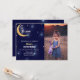 Duas da lua", de acordo com o texto, é um cartão de convite de festas de uma menina sonhadora com um cheio espacial de estrelas no céu.