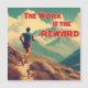 Como corredora, sabe que os resultados da corrida ou RP não são a recompensa. A recompensa está no treinamento, no trabalho. Este design está no estilo de um poster de viagens retrô vintage.
