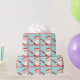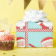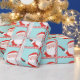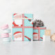 O último embrulho de presente de Natal de frisbee ou decoração de festas com Papais noeis de desenho animado tocando frisbee.