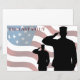 Honra os caídos com a última saudação. Em homenagem aos nossos membros mortos das forças armadas. Saudando soldados com a bandeira americana no fundo.