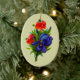 Íris e ornamento azuis bonitos da arte da reprodução das flores do vermelho. Clique sobre Customize para adicionar sua mensagem pessoal na parte traseira. Se você gostaria da imagem na parte de trás do ornamento também, contactar-me por favor me e estará feliz criar-lo para você. Se você precisa a ajuda ou tem quaisquer pedidos, contacte-me por favor enviam completamente a mensagem em meu homepage. Esta imagem está disponível em muitos produtos em minha galeria.
