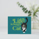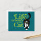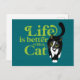 A ilustração do gato neste cartão apresenta um design geométrico lúdico e atraente. Ao lado do gato, as palavras "A vida é melhor com um gato" estão incluídas, adicionando um toque de sentimentalismo e enfatizando a alegria e a companhia que os gatos trazem para nossas vidas.