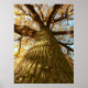Poster / impressão com foto de carvalho olhando para cima para um enorme tronco e galhos e coroa de folhas amarelas com céu azul atrás