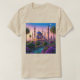 Camiseta de um castelo do médio leste com minaretes num oásis desértico, ao estilo de mil e uma noites árabes. A imagem foi feita com Leonardo.