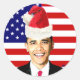 Neste adesivo de Natal, o Presidente Obama veste um chapéu de Papai Noel com a bandeira atrás dele. Excelente de ficar na parte de trás dos envelopes quando você enviar seus cartões de Natal! Também pode ser usado como etiquetas de presentes.