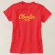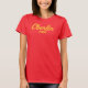 Mostre orgulho para o seu Obie com esta camiseta mãe Oberlin, com um roteiro amarelo numa camisa vermelha.