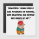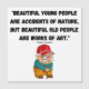 Obras de Arte; Engraçada citação de Eleanor Roosevelt sobre velhas pessoas que deveriam fazê-las se sentir muito melhor sobre si mesmas: "pessoas bonitas são acidentes da natureza, mas belas e velhas pessoas são obras de arte." Junto com a citação está uma imagem engraçada de um idoso cavalheiro com sua bengala.