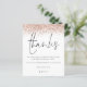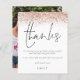 Obrigado Bridal Shower com Brilho em Dourado Rosa. Uma alternativa menor a 4,5” x 5,6” com preço acessível. Disponível em PAPEL CARTÃO 110 lb SEMI-BRILHANTE, que é a opção padrão (mais grosso para convites), OU PAPEL 80 lb COM ACABAMENTO EM SEDA (ideal para inclusões). Envelopes são opcionais e são ligeiramente maiores que o tamanho do cartão. Uma borda de brilho dourado rosa está no topo, e "Obrigado" está em uma fonte manuscrita em rosa poeirento. Personalize facilmente o texto com seus próprios detalhes. No verso, insira sua foto favorita do seu chá de panela em orientação retrato.