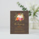 Convite jante de Ação de Graças para o documento orçamental. Flores de queda alegres e abóbora branca em motif de aquarela com folhas de outono e texto de roteiro sobre fundo de madeiras rústicas. Clique em Personalizar para alterar a cor do texto ou do fundo.