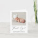 Mínimo anúncio de nascimento de bebê ou bebê, e obrigado que você dobrou com a foto de seu recém-nascido e "Obrigado" em um roteiro elegante e contemporâneo com uma batida cardíaca. Personalize com seu nome de cheio, data de chegada e estatísticas de nascimento em uma simples tipografia moderna. No dentro, adicione uma foto adicional e seu obrigado personalizado, você e a mensagem de anúncio, com espaço para uma nota manuscrita, se desejar.