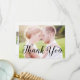 Obrigado Cartão com fotos de TYPOGRAPHY preto frente e trás. Adicione sua foto personalizada à frente com a opção de adicionar 3 à parte traseira e texto. Você também pode deixar o vazio traseiro excluindo todos os itens mostrados no verso ao personalizar.