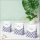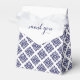 Estilo de chave angular tribal brilhante azul-escuro no obrigado branco, as caixas de presentes. Ideal para casamento, comemorações e favores de aniversário. Desenhada por Sarah Trett.