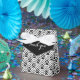 Caixa de presente branca e preto clássico. Leituras Obrigado. Ideal para casamentos com temas de mono preto e branco, eventos de gravata negra e outras celebrações. Desenhada por Sarah Trett.