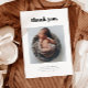 Cartão de nascimento simples e minimalista com texto no topo que diz "obrigado você" em caracteres negros.