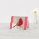 O cardeal do homem com sua cor brilhante é um pássaro favorito para meus cartões.