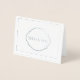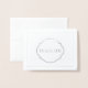 Folha de prata real Obrigado Nota A placa é mostrada em branco com um nome de amostra e um impressão de borda e sotaque em folha de prata real. Personalize esta placa e altere o texto do exemplo para o seu com este modelo ou comprar, conforme mostrado.
