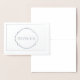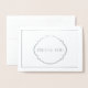 Folha prateada real Este cartão de nota de agradecimento é mostrado em branco com um nome de amostra e borda e impressão de sotaque em folha prateada real. Personalize esta placa e altere o texto do exemplo para o seu com este modelo ou comprar, conforme mostrado.