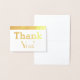 Diga Obrigado em Dourada (ou Silver) Folha em 2 tipos de Tipografia. A saudação de agradecimento está na frente da placa, a dentro é vazio para sua mensagem especial de Obrigados. A parte traseira da placa é projetada com faixas de folhas de tamanho variável.