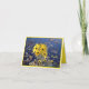 A fotografia deste cartão é um girassol amarelo brilhante e cheery com água e folhas ao fundo.