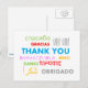 "Obrigado" escrito em diferentes línguas e em cores diferentes