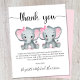 Cartões de agradecimentos de chá, bonitinho e amigável, com meninas gêmeas, apresentando "obrigado você" em um roteiro de na moda com baloiços e duas aquarelas de elefantes de bebês cor-de-rosa. Por baixo, você pode personalizar facilmente seu obrigado, enviar uma mensagem ou deixar o vazio para uma nota manuscrita.