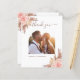 Um obrigado de casamento moderno, seu cartão com fotos. Fundo branco. Decorados com florais cor-de-rosa pincelado e rosa e grama pampas. Personalize e adicione 2 das suas fotos de casamento e agradeça a nota no verso