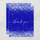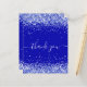 Uma cor azul real de fundo. Decorado com pó falso de cinza prateada. Na frente, um grande guião escrito à mão branca e o texto: Obrigado. Voltar: Personalize e adicione seu nome e nota de agradecimento. O nome é escrito com um moderno estilo escrito à mão com traços. Para manter as hastes, exclua apenas o nome da amostra, deixe os espaços ou emoji na frente e depois do nome.