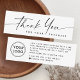 Elegante, branco ou qualquer obrigado colorido para sua compra ou miniplaca de inserção comercial com modelo de logotipo personalizado. Você pode alterar cores, mover e redimensionar elementos com a ferramenta design.