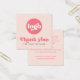 Cartões de agradecimentos comercial quadrado com o texto "Obrigado" em uma fonte com estilo retroativo. Texto cor-de-rosa (ou personalizado) em um fundo cor-de-rosa claro e pincelado. Carregue seu logotipo na frente e adicione texto personalizado na parte traseira. Você pode alterar cores, mover e redimensionar elementos com a ferramenta design.