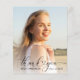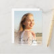 Este design apresenta uma fotografia personalizada e uma letra preta. Sinta-se livre para mudar a imagem e o obrigado que você envia no verso.