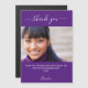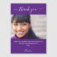 Uma cor de fundo roxa. Escrito branco, com letras grandes e manchadas, e o texto: Obrigado. Personalize e adicione sua foto, obrigado nota e nome.