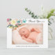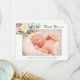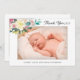 Este anúncio combinado minimalista bonito, na moda do nascimento do bebê e agradece-lhe carda a característica dois de suas fotos pessoais na parte dianteira e na parte traseira, com obscuridade moderna - caligrafia cinzenta e um buquê de flores amarelas bonito, cor-de-rosa e macias da aguarela. Há uma sala na parte traseira para o stats do nascimento do seu bebê e uma nota pessoal.