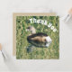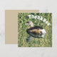 Este cartão de apreciação único apresenta um belo verbo flutuando na água calma. As penas dormentes deste animal se destacam contra a superfície lisa da água. gramíneas verdes e sementes, assim como o adorável pássaro, são refletidos na água nesta foto da natureza. "Obrigado" é apresentado acima do pássaro pequeno e está curvo ao longo da esquina desta placa. Personalize facilmente se desejar.