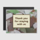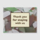 O aluguel de casa está se tornando cada vez mais popular. Esta é uma maneira barata de fazer o aluguel de férias, além da sua competição. Coloque esta obrigado no frigorifico da sua casa de férias para lembrar aos seus convidados que você está feliz que eles estão ficando com você. O fundo apresenta uma bela fotografia de uma coleção de vidro marinho em cores de tons de terra de marrom, verde e branco. "Obrigado por ficar conosco" pode ser fácil e rapidamente personalizado para atender às suas necessidades.