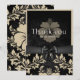 Obrigado laço preto, cartão de anúncio de padrão floral bege. Confira o resto desta coleção elegante de casamento e decoração de casa.