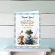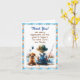 Obrigado, cartões por presentes de chá de fraldas ou presentes de bebê. Uma ilustração adorável e doce da aquarela de um bebê pescando com um cachorrinho. As cores deste cartão incluem azul e laranja.