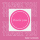 Um simples obrigado minimalista em tipografia elegante branca num fundo feminino rosa.