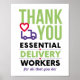 Obrigado Trabalhadores Essenciais por tudo o que você assina ou Poster. Os trabalhadores de entrega mantiveram as embalagens em movimento, as parcelas em jogo e a comida entregue. É assim que dizemos que o obrigado por tudo o que você faz!