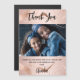 Uma cor de fundo rosa dourada, decorada com veias rosa douradas. Escrita escrita com letras grandes com baloiços e o texto: Obrigado. Personalize e adicione sua foto, obrigado nota e nome.