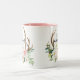 Um rústico bonito cora caneca cor-de-rosa floral/dos antlers design, para agradecer a sua madrinha de casamento. Fácil editar os nomes para serir suas necessidades. Outros artigos estão disponíveis nesta coleção bonito que inclui a dama de honra, o florista e a empregada doméstica de honra.