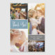 Parabéns no seu casamento! Comemore esta ocasião especial e obrigado seus convidados com nossos cartões Verticais de Foto de Casamento Azul. Essas placas planas personalizáveis são uma maneira perfeita de compartilhar as belas memórias capturadas no seu grande dia. Escolha quatro das suas fotos de casamento favoritas para criar uma colagem única e pessoal na frente do cartão. Seus hóspedes ficarão encantados em receber esse obrigado sincero de você com um vislumbre do amor e alegria compartilhados durante sua celebração de casamento. O elegante esquema de cor azul e cinza, que empoeirado, adiciona um toque de sofisticação ao design, fazer estes agradecimentos não só um símbolo de apreço, mas também uma lembrança que seus hóspedes apreciarão. Personalize as cartas com seus nomes e data de casamento, acrescentando esse toque extra de atenção. O receptor se sentirá especial e amado, sabendo que você levou tempo para criar um cartões de agradecimentos personalizado apenas para eles. Para tornar esses cartões de agradecimento ainda mais memoráveis, considere selecionar fotos que apresentem convidados honrados que tiveram um papel significativo no seu casamento. É uma bela maneira de expressar sua gratidão e criar uma lembrança duradoura de seu dia especial. Nossos cartões Verticais de Colagem de Fotos de Casamento Azul... permitirão que você compartilhe sua felicidade e gratidão com seus entes queridos. Estas cartas são uma expressão sincera de apreço que será apreciada e lembrada pelos vossos convidados. Quando você olha para o dia do seu casamento, você pode reviver a alegria e o amor através dessas lindas fotos, e seus convidados também podem. É um maravilhoso lembrete do amor que você compartilhou e das memórias que você criou juntos. Obrigado seus convidados em estilo e crie memórias duradouras com nossos cartões Verticais de Foto de Casamento Azul. Seu dia de casamento foi especial, e agora você pode fazer suas cartas de agradecimento como memoráveis. Parabéns de novo, e desejamos a vocês uma vida de amor e felicidade juntos!